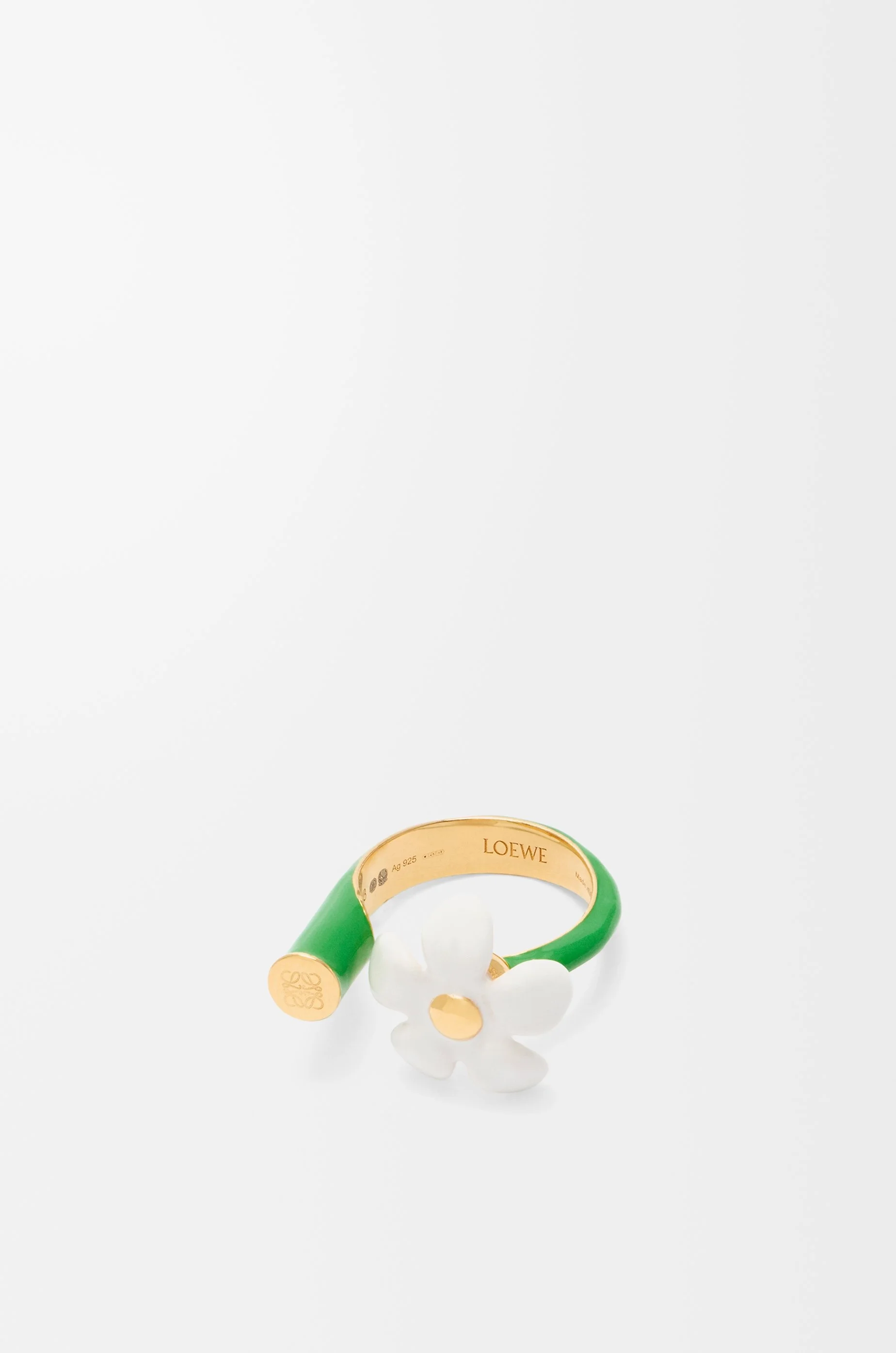 Flor ring in sterling silver with a gold finish featuring an enameled flower. - Engraved Anagram Colour: Gold/White Main material: Sterling Silver/Enamel Weight: 0.0073 kg Made in: Italy
