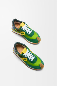 Lace-up sneaker in nylon and suede featuring an updated ultra-flexible and lightweight construction and the signature honey-coloured rubber outsole that extends from the toecap to the back of the heel. - 25mm heel - Signature L monogram on the side - Embossed Anagram on the tongue - Gold embossed LOEWE on the heel tab - Runs a half-size larger. If between sizes, choose the smaller size. Details - Colour : Gradient Green/Yellow - Main material : Nylon/Calf - Heel height : 2.5 - Weight : 0.9 kg - Model ID : LLSR282X11 - Made in : Italy