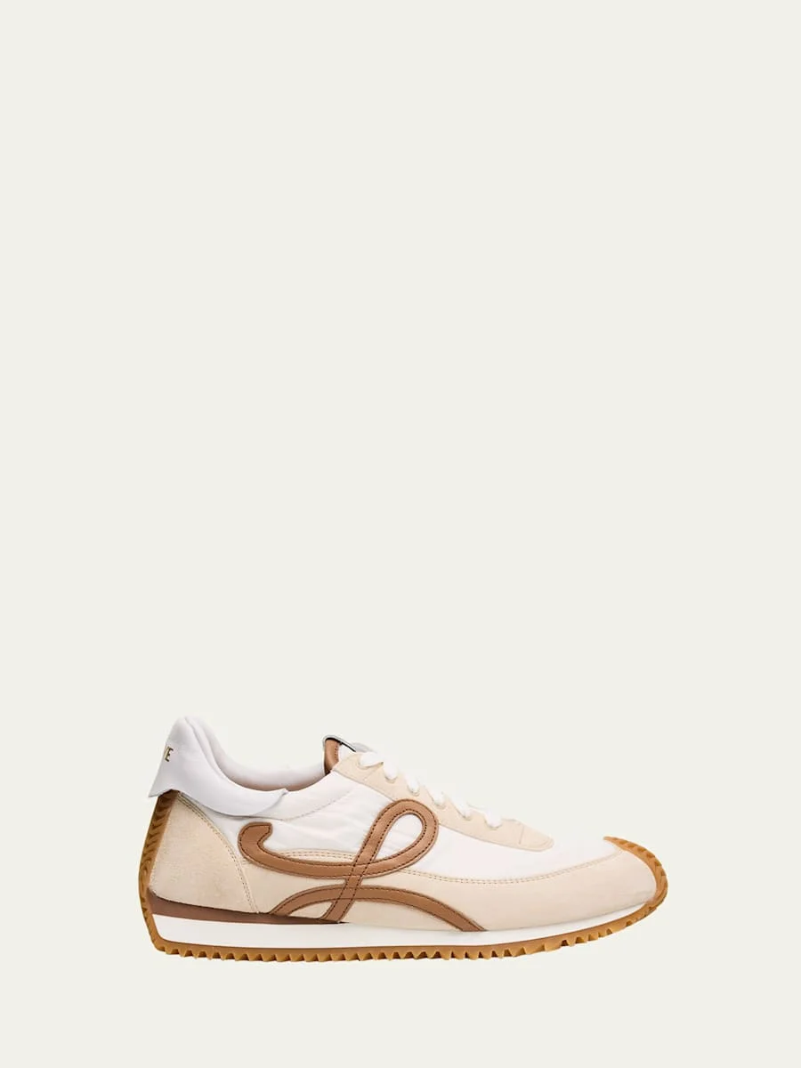 Loewe "Flow" runner sneakers in colorblocked fabric, suede and leather Flat heel Round toe Lace-up vamp Cushioned footbed Lightweight, sturdy TPU outsole Lining: Unlined Made in Italy Online Inquiries: BGS21_X6XFQ| Store Inquiries: #5038504