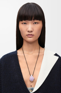 Foam Drip pendant necklace crafted in sterling silver and pave crystals inspired by a foam piece exclusively created by artist Lynda Benglis as part of a special LOEWE x Lynda Benglis collaboration. - Cord necklace - Engraved L BENGLIS signature - Engraved LOEWE - Anagram engraved Pebble detail Details - Colour : Silver/Light Mauve - Metallic colour : Silver - Main material : Sterling Silver/Crystals - Weight : 0.036 kg - Model ID : JJL5241X02 - CIL : - 0011037777 - Made in : Italy