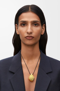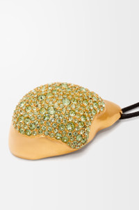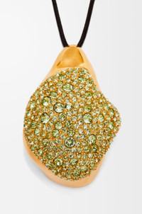 Foam Drip pendant necklace crafted in sterling silver with a gold finish and pave crystals inspired by a foam piece exclusively created by artist Lynda Benglis as part of a special LOEWE x Lynda Benglis collaboration. - Cord necklace - Engraved L BENGLIS signature - Engraved LOEWE - Anagram engraved Pebble detail Details - Colour : Gold/Light Green - Metallic colour : Gold - Main material : Sterling Silver/Crystals - Weight : 0.036 kg - Model ID : JJL5241X01 - CIL : - 0011037785 - Made in : Italy