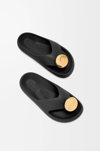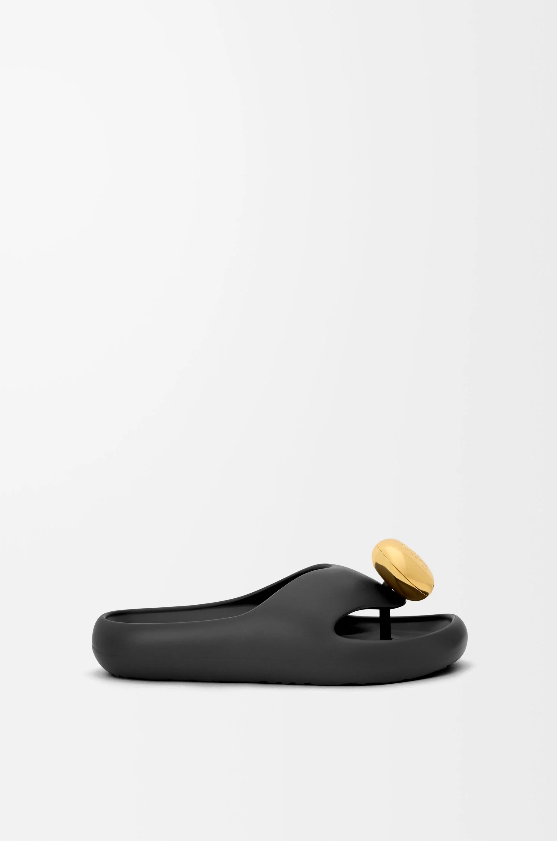 Toe post sandal in XL Extralight® foam rubber featuring an Anagram Pebble in a shiny metallic finish and an ergonomic insole - - 40mm heel - Engraved Anagram, Anagram embossed outsole Colour: Black/Gold Main material: Foam Weight: 0.7 kg Made in: Italy