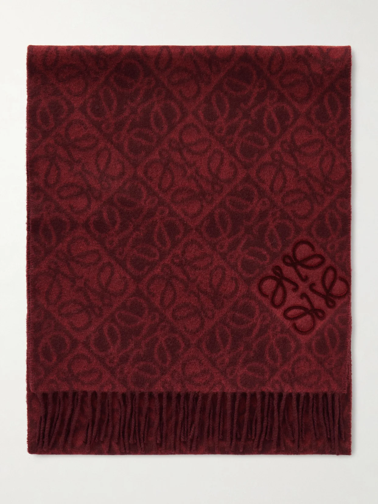 Loewe's scarf is jacquard-knitted with the 'Anagram' in tonal shades, so it's distinct yet versatile. It's made from wool and cashmere-blend and has fringing along each end.