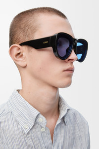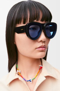 Aviator-shaped sunglasses in injected nylon with a front lens construction. - Universal fit - UVA/UVB protection - Gold-finish metal LOEWE Colour: Black Main material: Nylon Weight: 0.054 kg Made in: Italy