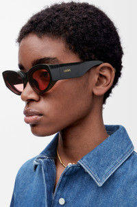 Cateye-shaped sunglasses in injected nylon with a front lens construction. - Universal fit - UVA/UVB protection - Gold-finish metal LOEWE Colour: Black Main material: Nylon Weight: 0.045 kg Made in: Italy