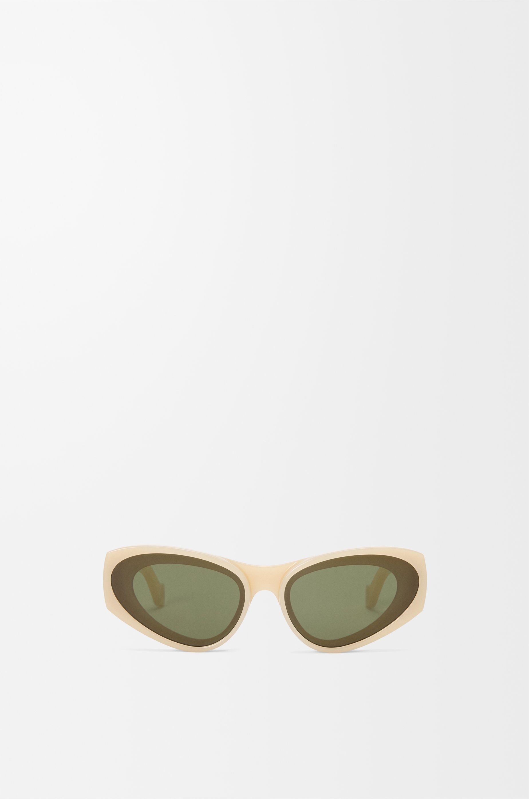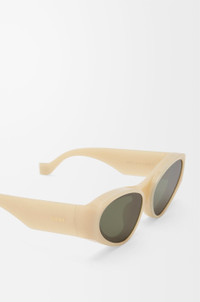 Cateye-shaped sunglasses in injected nylon with a front lens construction. - Universal fit - UVA/UVB protection - Gold-finish metal LOEWE Colour: Milky Ivory Main material: Nylon Weight: 0.045 kg Made in: Italy