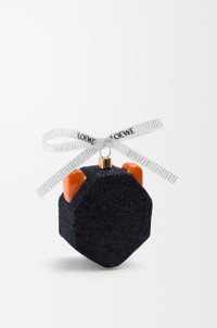 Futurist Cat bauble in blown glass. This bauble is inspired by Louis Wain's "Futurist Cats" porcelain vase series. - LOEWE jacquard ribbon Colour: Black/Green Metallic colour: Gold Main material: Blown glass Weight: 0.047 kg Height: 7.3 cm Width: 6.3 cm Depth: 3.2 cm Made in: Poland