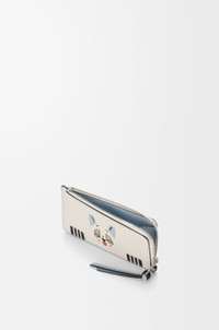 Coin cardholder in classic calfskin featuring a leather marquetry Futurist Cat and printed lettering on the reverse. This cardholder is inspired by Louis Wain's "Futurist Cats" porcelain vase series. - Four card slots, one coin compartment - Zip closure - Contrast calfskin lining - Embossed Anagram Colour: Soft White Metallic colour: Palladium Main material: Classic calf Weight: 0.042 kg Height: 7.5 cm Width: 13 cm Depth: 1 cm Made in: Spain
