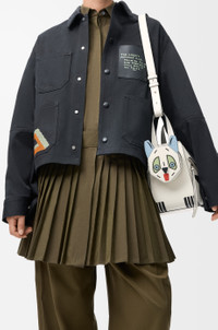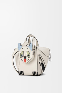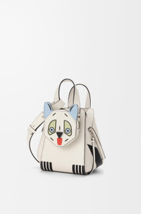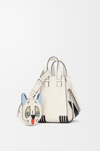 The Hammock is a versatile design whose flexible sides fold in and out to create distinctive silhouettes. This compact version is crafted in classic calfskin with leather marquetry, patchwork and stacked leather Futurist Cat motifs. It comes with a detachable cat-shaped zipped purse. Inspired by Louis Wain's "Futurist Cats" porcelain vase series. - Shoulder, crossbody or hand carry - Detachable and adjustable strap - Internal hook closure - One external zip pocket, two internal slip pockets - Herringbone cotton canvas lining - Embossed Anagram Colour: Soft White Metallic colour: Palladium Main material: Classic calf Strap length: 78 - 85 cm Strap drop: 47 - 50 cm Handle drop: 10 cm Weight: 0.6095 kg Height: 20.8 cm Width: 14.4 cm Depth: 19.5 cm Made in: Spain