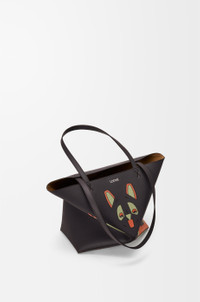 The Puzzle Fold's lightweight geometric structure is designed to fold completely flat, making it a perfect tote to travel with. This medium version is crafted in nappa calfskin with leather marquetry Futurist Cat motifs. This bag is inspired by Louis Wain's "Futurist Cats" porcelain vase series. - Shoulder or hand carry - Suede lining - Silver embossed LOEWE Colour: Dark Taupe Main material: Nappa calf Handle drop: 27 cm Weight: 0.43 kg Height: 31.5 cm Width: 25.5 cm Depth: 14.5 cm Made in: Spain