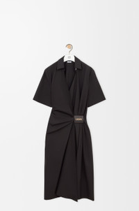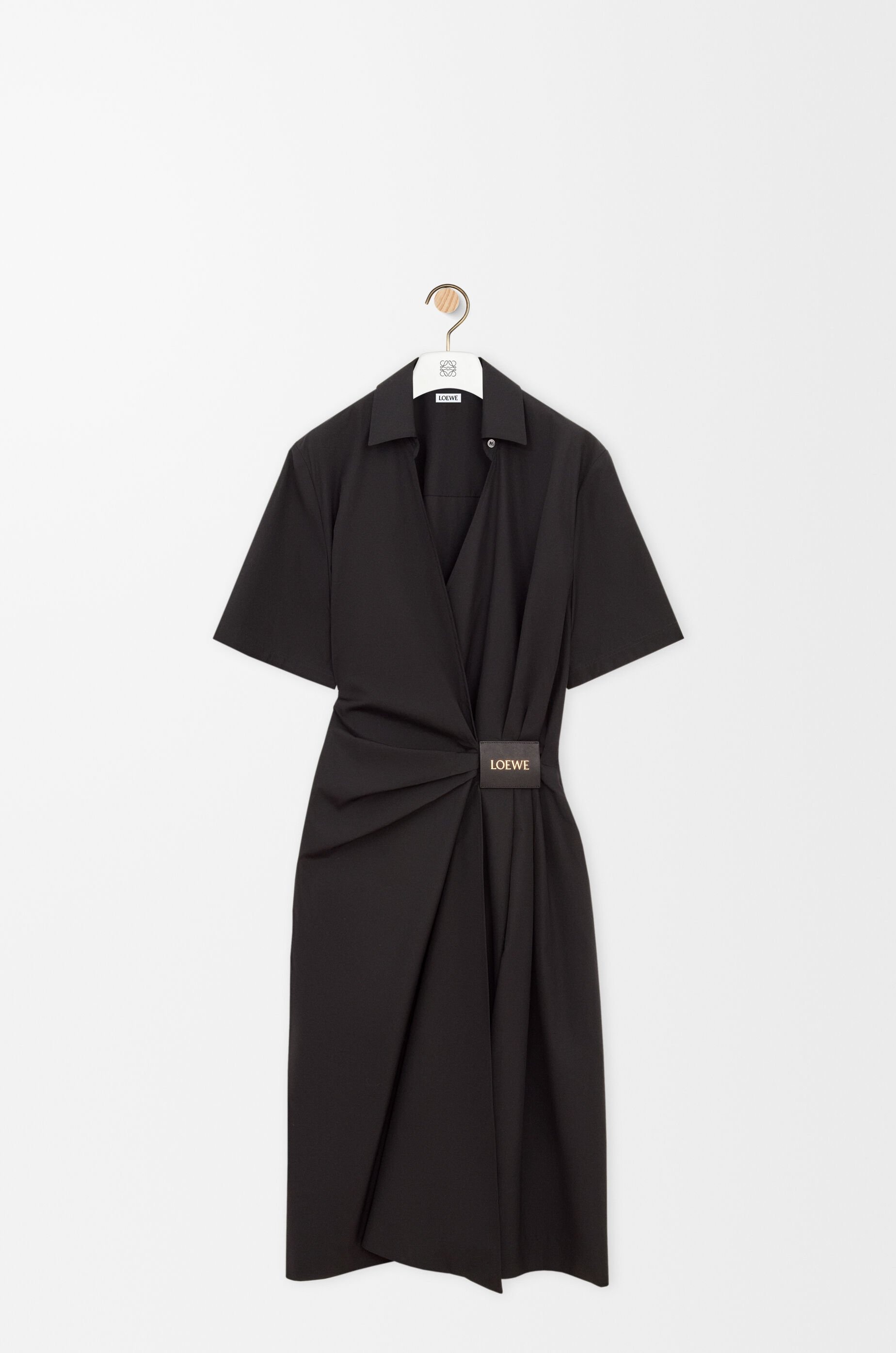 Dress in lightweight cotton poplin featuring a wrap construction with asymmetric hand-gathered draping at the front. - Relaxed fit, mid length - Classic collar - V neckline with button fastening at the top - Concealed buttoned side belt and inside tie fastening - Detachable LOEWE embossed leather patch placed at the front Details - Colour : Black - Main material : Cotton - Weight : 0.3 kg - Model ID : S540Y09XSM - Made in : Italy