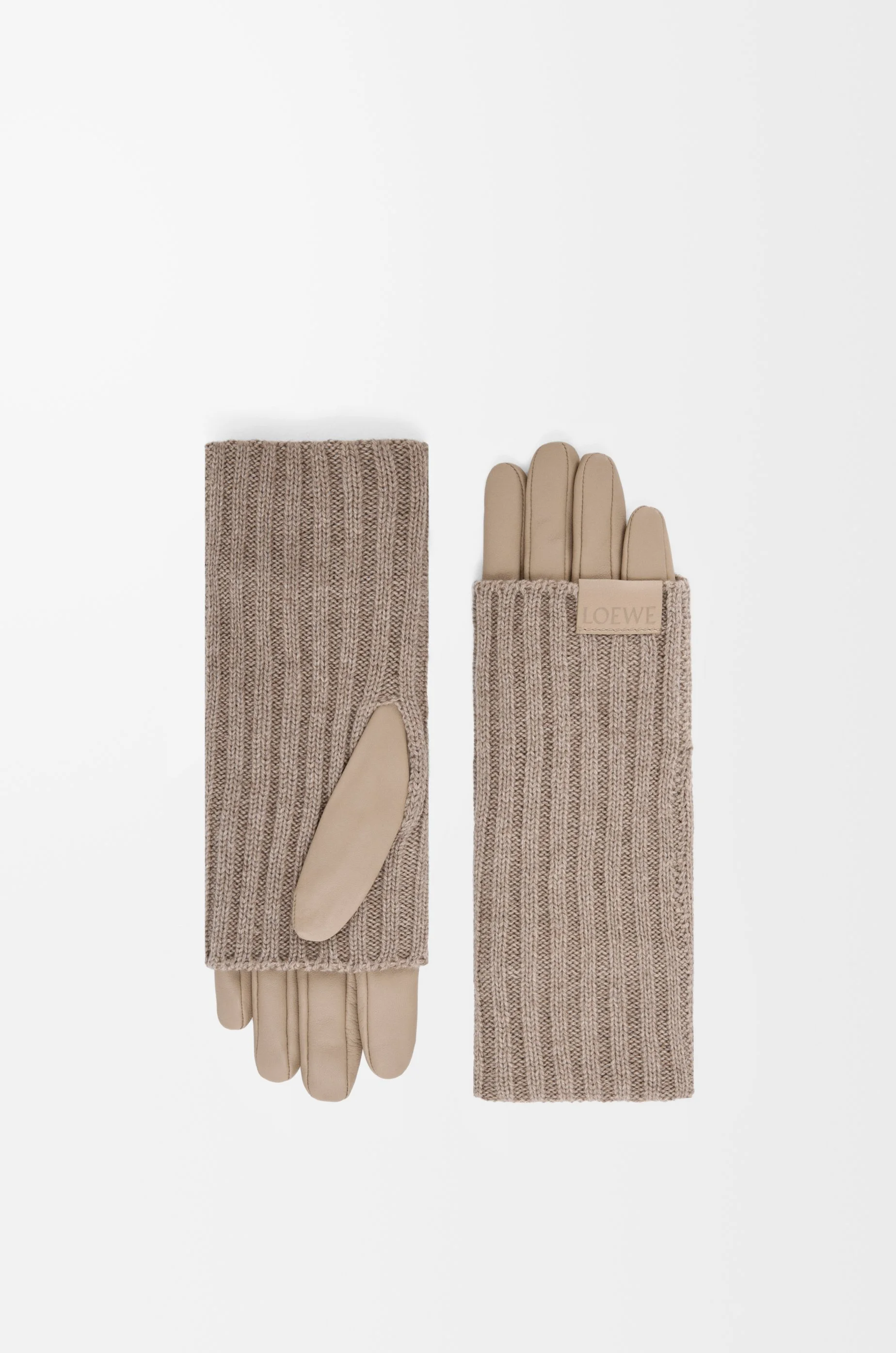 Gloves in lightweight cashmere and nappa lambskin featuring ribbed knit elbow-length sleeves with thumb cut-outs. - Alpaca shearling lining - LOEWE embossed leather tab placed at the cuff Colour: Sand Main material: Cashmere/lambskin Weight: 0.1 kg Made in: France