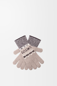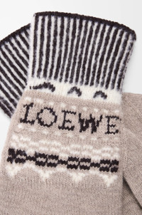 Gloves in medium-weight wool blend featuring a Fair isle jacquard pattern. These gloves are inspired by Louis Wain's "Futurist Cats" porcelain vase series. - Striped cuffs - LOEWE jacquard placed on the top Colour: Beige/Multicolor Main material: Wool/polyamide Weight: 0.067 kg Made in: Italy