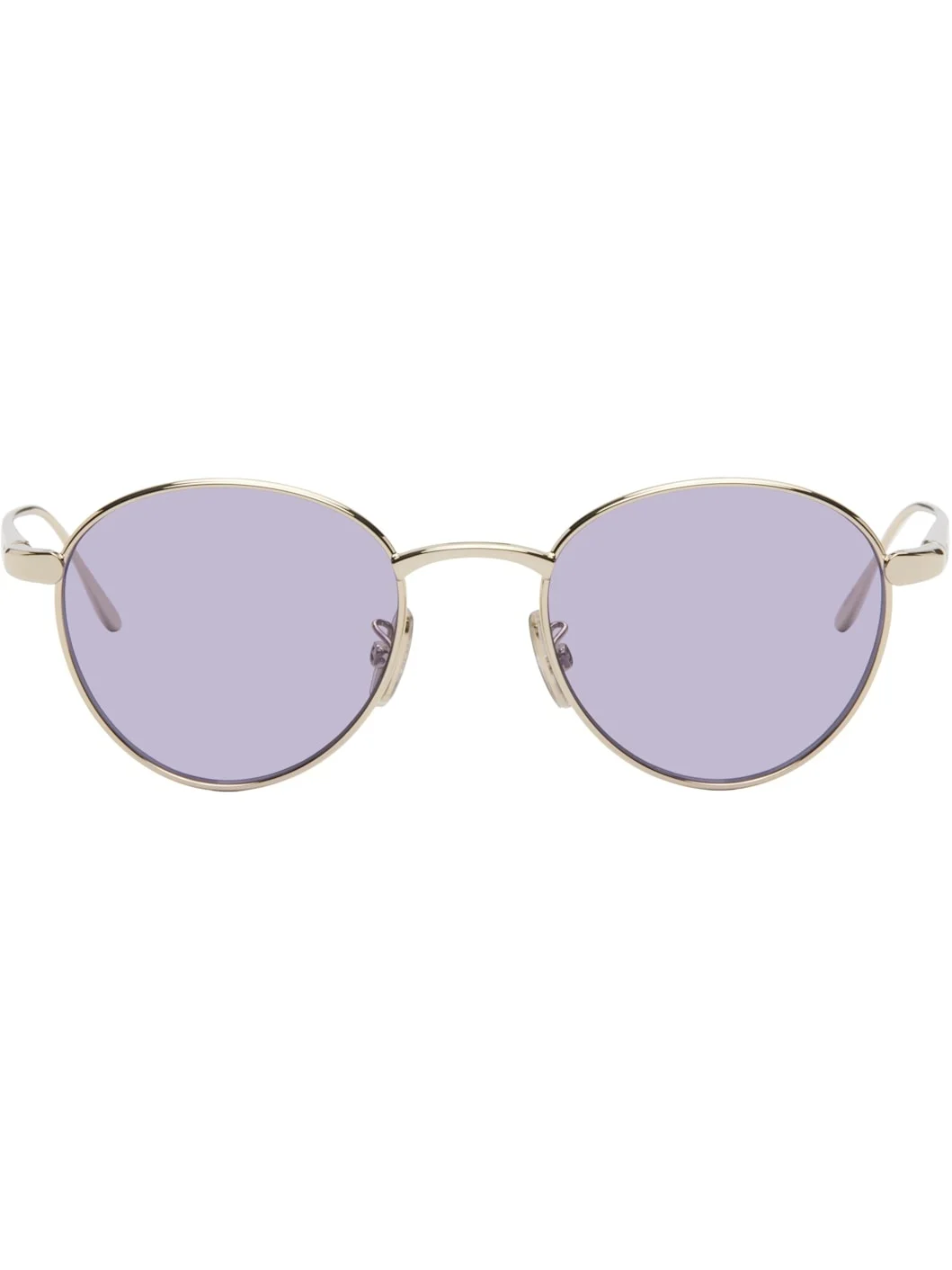 Round metal-frame sunglasses in gold tone. · Purple lenses · UVA/UVB protection, Category 2 · Adjustable rubber nose pads · Logo etched at temples · Includes pouch · Size: 49.20 140 Supplier color: Gold/Violet