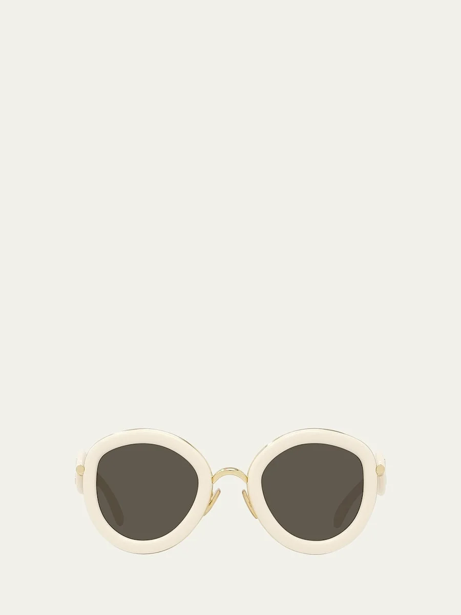 Loewe "LW50069IW" round sunglasses in acetate and nylon/polyamide Features golden accents Lens/bridge/temple (in mm): 51-22-130 Adjustable nose pads Anagram on temples Thin, tapered arms Hand wash Made in Italy Proposition 65 warning for California residents Online Inquiries: BGS21_D4V1A| Store Inquiries: #4721088
