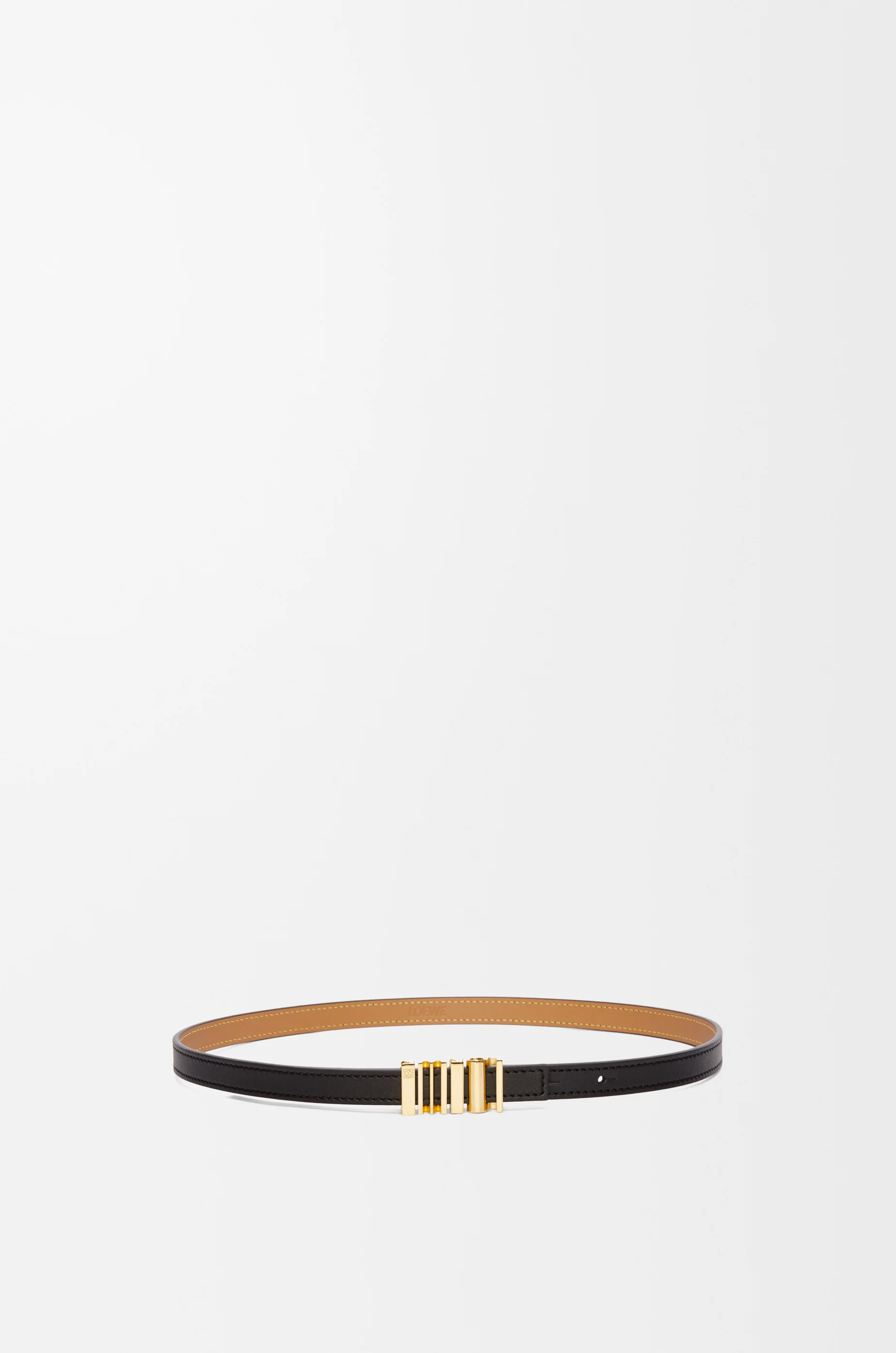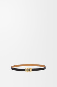 Belt in classic calfskin with a polished LOEWE graphic buckle. - 1.5cm wide - Five holes regulation Details - Colour: Black/Gold - Metallic colour: Gold - Main material: Smooth Calf - Weight: 0.05 kg - Depth (cm): 1.5 - Depth (inch): 0.6 - Model ID: E619Z16X15 - Made in: Spain