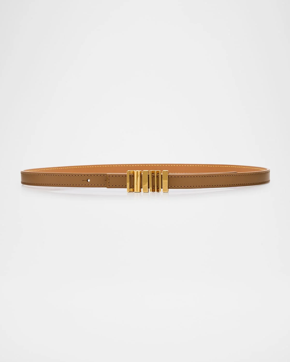 - Loewe skinny belt with graphic buckle with signature anagram engraving - Approx. 1.5 cm wide - Goldtone hardware - Adjustable fit - Calf leather - Professional cleaning recommended - Made in Spain
