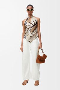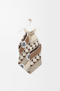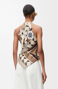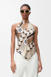 Top in lightweight washed silk twill featuring an exclusive compass print with a placed Anagram and a pointy hem. - Regular fit, regular length - Halterneck with Anagram hardware at the front - Keyhole at the front, tie fastening at the back - Side zip fastening Colour: Beige/Multicolor Main material: Silk Weight: 0.1 kg Made in: Italy