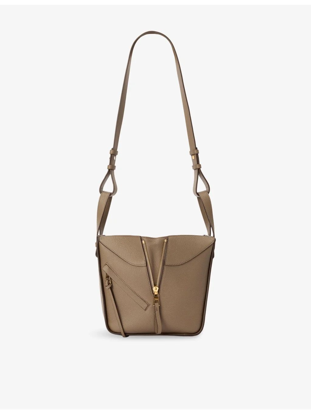 PRODUCT DETAILS - Loewe leather top-handle bag - 100% leather; lining 100% cotton canvas - Interior hook closure - Flexible sides folds, top handle, detachable and adjustable strap, one external zip pocket, two internal slip pockets, cotton canvas lining, embossed Anagram - Height 20.8cm, width 14.5cm, depth 19.5cm - Wipe with a clean, dry cloth - Made in Spain - Comes width a dust bag Ref: R04489872