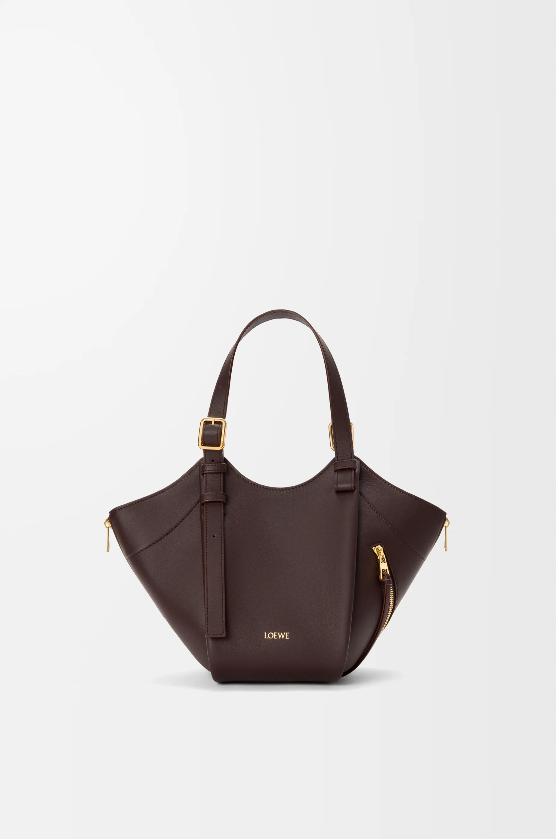 The Hammock Flip offers a soft and ultra-versatile variation on the iconic bag while maintaining the line's signature details. An innovative stitched and turned construction allows for an easy transition from a carry-all to a body-friendly hobo. This version is crafted in classic calfskin. - Shoulder, crossbody or hand carry - Detachable and adjustable strap - Magnetic closure - One external zip pocket, two internal slip pockets - Herringbone cotton canvas lining - Silver or gold embossed LOEWE Colour: Dark Chestnut Metallic colour: Gold Main material: Classic calf Strap length: 82 - 111 cm Strap drop: 38 - 53 cm Handle drop: 17 - 27 cm Weight: 0.58 kg Height: 22 cm Width: 15 cm Depth: 22.5 cm Made in: Spain