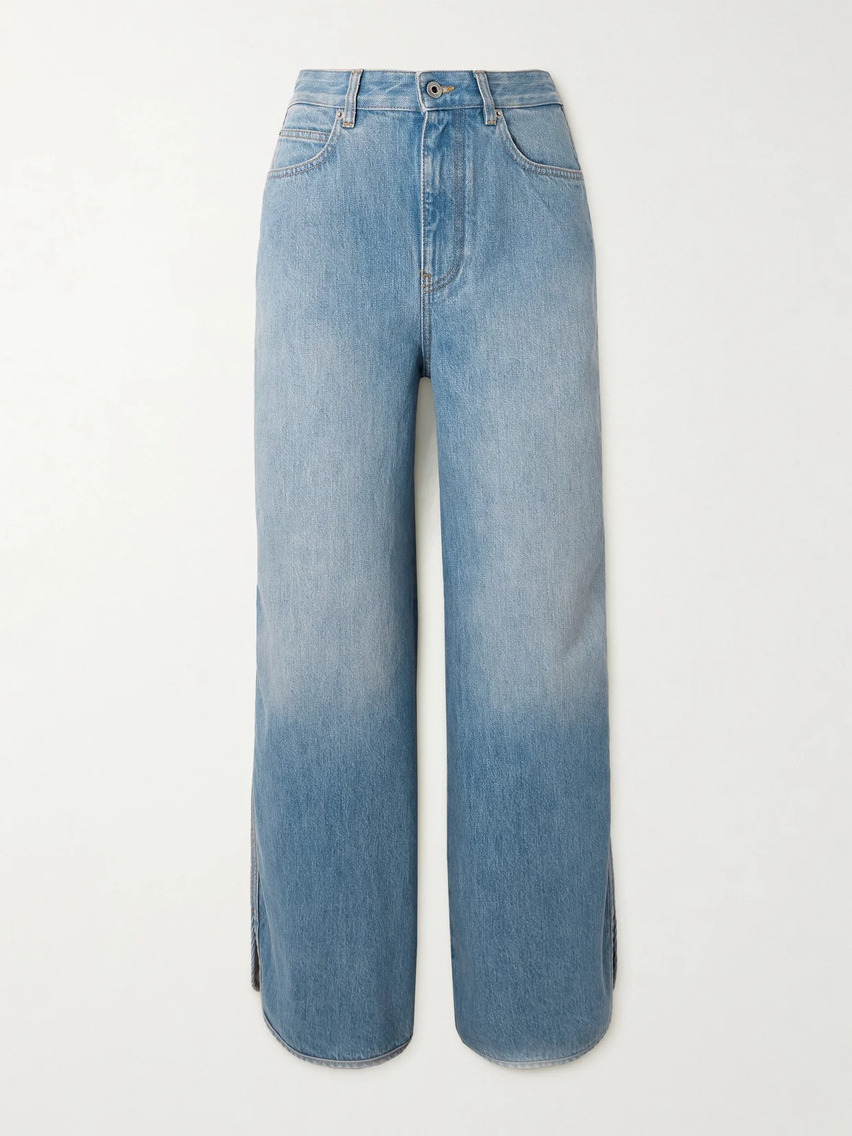 Loewe's jeans have wide, curved hems with side splits that highlight your footwear. They're cut from rigid denim and have a high-rise waist and a logo-debossed leather patch at the back.