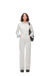 Jeans crafted in medium-weight cotton denim. - Regular fit - Long length - High waist - Slouchy leg - Concealed button fastening - Five pocket style - LOEWE embossed leather patch placed at the back Details - Colour: White - Main material: Cotton - Weight: 0.9 kg - Model ID: S540Y11X69 - Made in: Italy