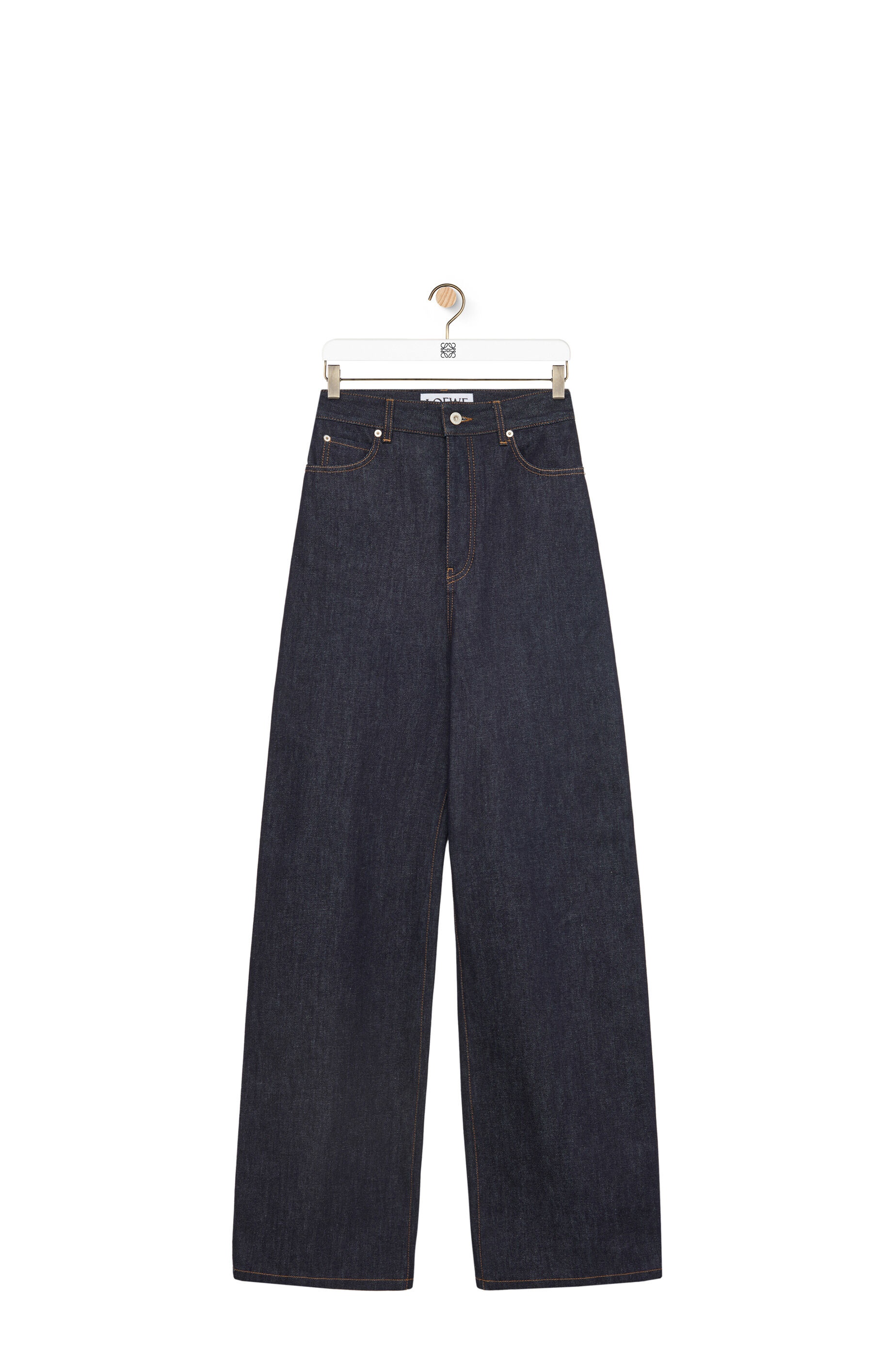 Jeans crafted in medium-weight cotton raw denim. - Regular fit - Long length - High waist - Slouchy leg - Concealed button fastening - Five pocket style - LOEWE embossed leather patch placed at the back Details - Colour: Raw Denim - Main material: Cotton - Weight: 0.9 kg - Model ID: S540Y11X64 - Made in: Italy