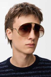 Aviator-shaped sunglasses in a light metal construction. - Universal fit - UVA/UVB protection - Engraved LOEWE Details - Colour : Gradient Brown - Main material : Metal - Weight : 0.1 kg - Lens size (cm) : 6.1 - Lens size (inches) : 2.4 - Bridge size (cm) : 1.3 - Bridge size (inches) : 0.5 - Temple size (cm) : 12 - Temple size (inches) : 4.7 - Model ID : G737LIGX01 - CIL : - 0011285533 - Made in : Italy