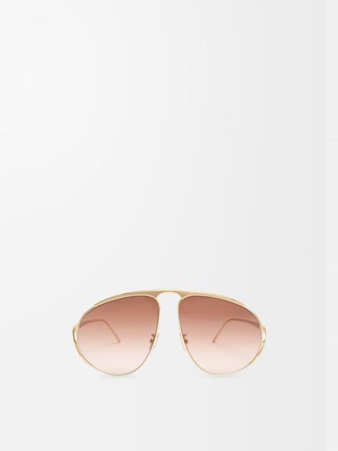 Aviator-shaped sunglasses in a light metal construction. - Universal fit - UVA/UVB protection - Engraved LOEWE Details - Colour : Silver - Main material : Metal - Weight : 0.1 kg - Lens size (cm) : 6.1 - Lens size (inches) : 2.4 - Bridge size (cm) : 1.3 - Bridge size (inches) : 0.5 - Temple size (cm) : 12 - Temple size (inches) : 4.7 - Model ID : G737LIGX01 - CIL : - 0011285541 - Made in : Italy