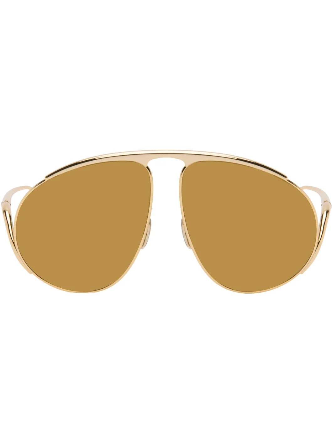 Aviator-style metal-frame sunglasses. · Mirrored lenses in gold tone · UVA/UVB protection · Bridgeless · Rubber nose pads · Logo etched at temples · Leather pouch included · Size: 61.13 120 Supplier color: Shiny Endura Gold Metal. Made in Italy 252677F005000