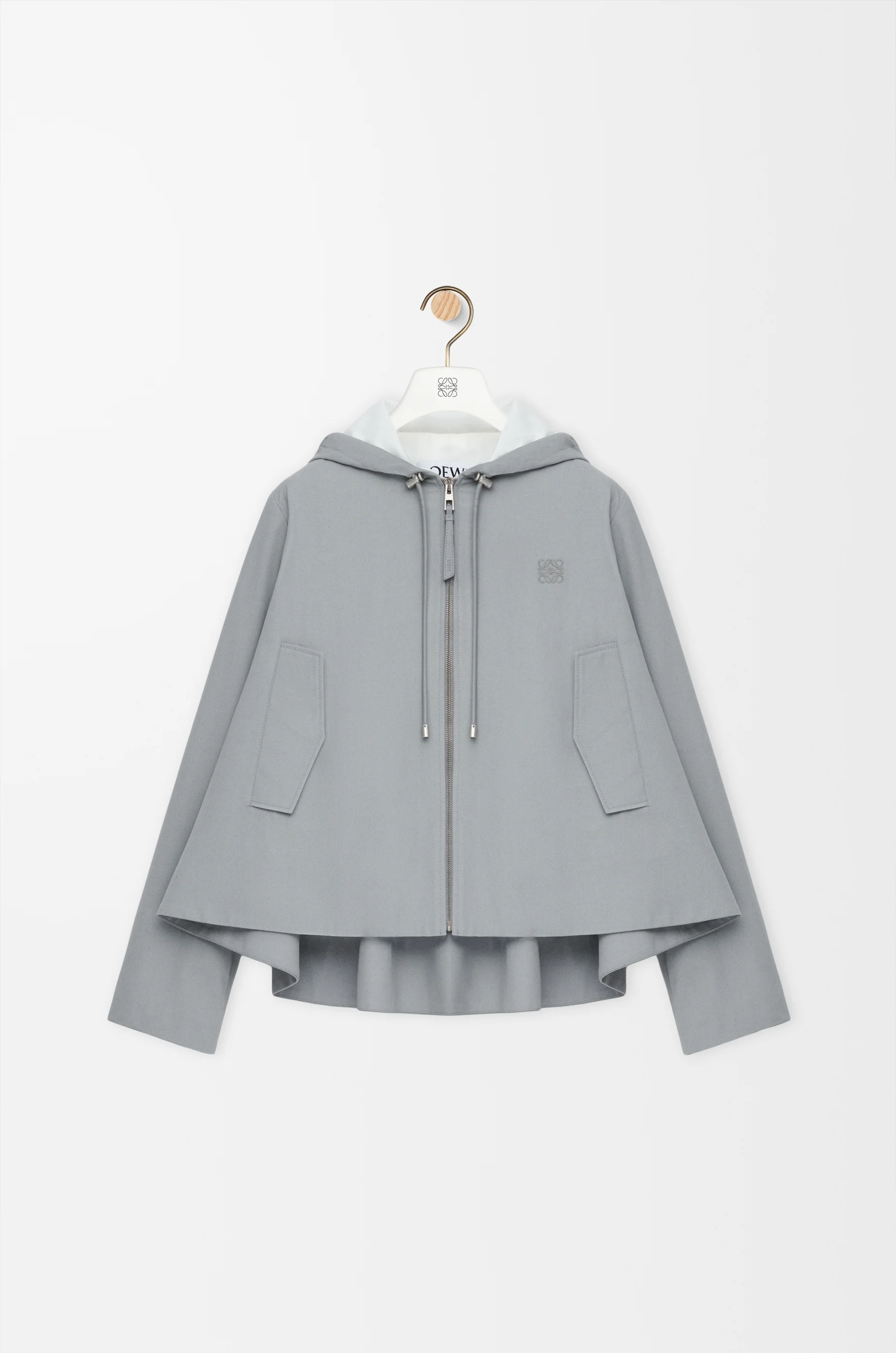 Jacket in lighweight compact cotton twill featuring a trapeze silhouette. - Relaxed fit, short length - Hooded collar with drawstring - Zip front fastening - Buttoned flap pockets - Anagram embroidery placed on the chest Colour: Light Grey Main material: Cotton Weight: 0.73 kg Made in: Italy Materials & care Main Material: 100% cotton