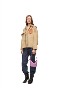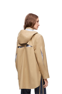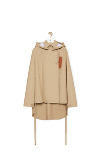 Hooded parka crafted in water repellent medium-weight cotton gabardine. - Relaxed fit - Regular length - Cut-out slits at the elbows and at the back revealing striped cotton poplin lining - Detachable hooded collar - Belted cuffs - Button front fastening with foldover panel - Patch pockets - Back pleat - Asymmetric front to back - Side slits with ties - LOEWE Anagram embossed leather patch pocket placed on the chest Details - Colour: Sweet Caramel - Main material: Cotton - Weight: 0.8 kg - Model ID: S540Y02X10 - Made in: Italy