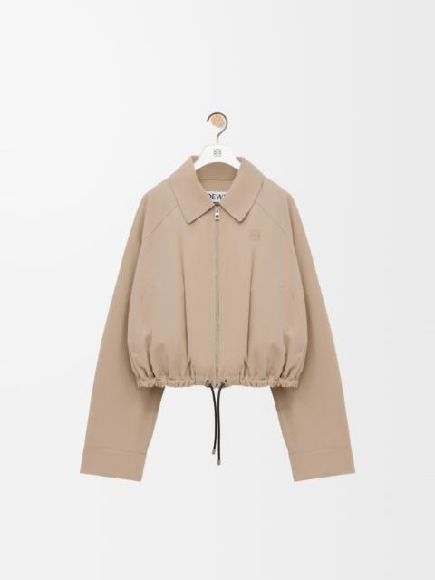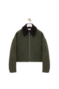 Jacket in medium-weight garment-dyed cotton twill featuring a boxy silhouette with a contrasting shearling collar. - Relaxed fit, regular length - Zip front fastening with a leather placket - Welt pockets, LOEWE Anagram inside leather patch pocket - Detachable quilted check lining - Leather backing at the collar and cuffs - LOEWE embossed leather patch placed at the back Details - Colour : Khaki Green - Main material : Cotton - Weight : 1.0 kg - Model ID : S359Y02XD0 - Made in : Italy