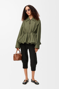 Jacket in lightweight cotton blend ottoman featuring an adjustable silhouette via drawstrings at the waist and a puffed hem. - Regular fit, regular length - Classic collar - Zip front fastening - Seam pockets - Fully lined - LOEWE Anagram embossed leather patch placed at the back Colour: Khaki Green Main material: Cotton/Polyamide Weight: 0.7 kg Made in: Italy Materials & care Main Material: 60% cotton 40% polyamide