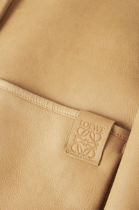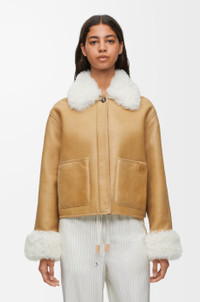 Jacket crafted in medium-weight curly Merino shearling. - Regular fit - Regular length - Classic collar - Curly shearling at collar and cuffs - Dropped shoulders - Concealed button front fastening - Patch pockets - LOEWE Anagram embossed tab placed on the left pocket Details - Colour: White/Gold - Main material: Shearling - Weight: 1.2 kg - Model ID: S359Y19LA5 - Made in: Italy