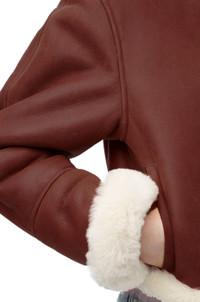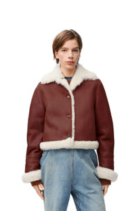 Jacket crafted in medium-weight straight Merino shearling. - Regular fit - Regular length - Classic collar - Contrast collar, cuffs and hem - Button front fastening - Horn buttons - Seam pockets Details - Colour : White/Brown - Main material : Shearling - Weight : 1.2 kg - Model ID : S359Y2SL08 - Made in : Italy