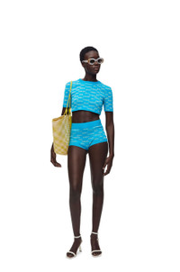Knickers crafted in medium-weight jacquard knit. - Jacquard stitch - Slim fit - Short length - Mid waist - Allover name pattern - Elasticated waistband - Ribbed waist and hem Details - Colour: Turquoise/Ecru - Main material: Coton - Weight: 0.1 kg - Model ID: S616Y17K60 - Made in: Italy