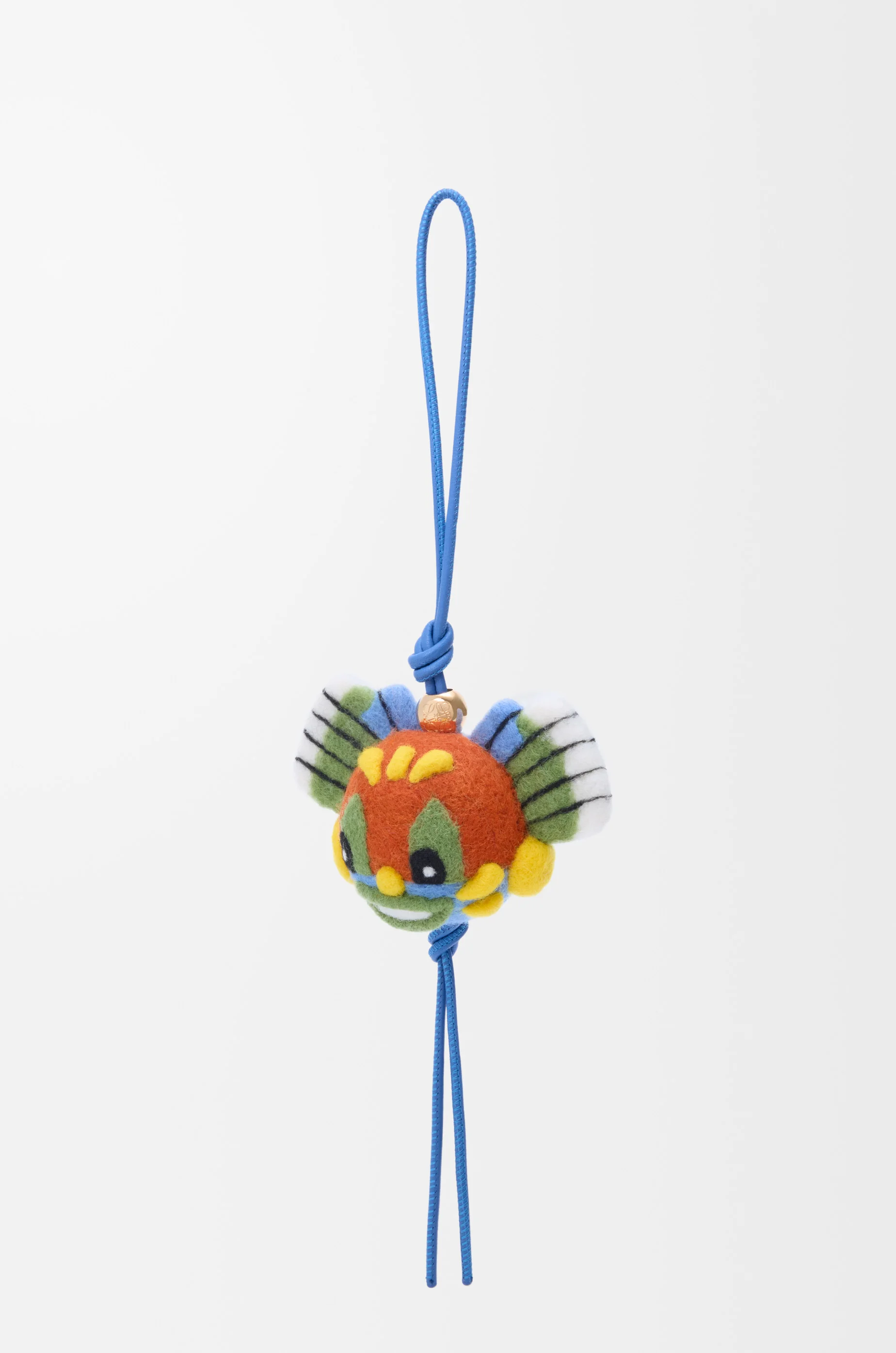 Knight Cat charm in felt with a looped calfskin strap and an Anagram Pebble dice. This charm is inspired by Louis Wain's "Futurist Cats" porcelain vase series. - Engraved Anagram Colour: Red/Blue Metallic colour: Gold Main material: Felt Weight: 0.029 kg Width: 31 cm Depth: 9 cm Made in: Spain