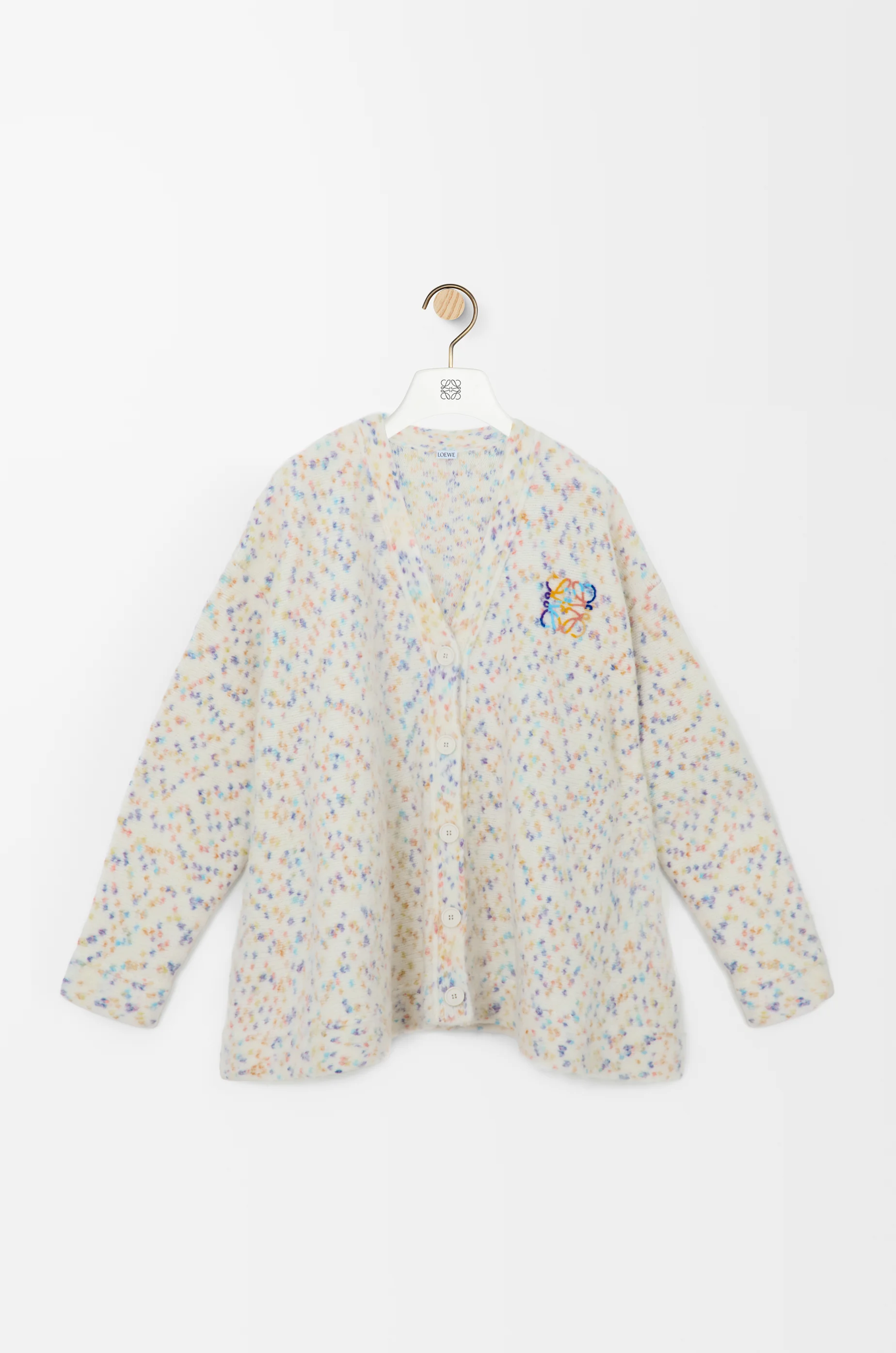 Cardigan in medium-weight wool and alpaca blend featuring a trapeze silhouette. - Relaxed fit, regular length - Jersey stitch - V-neck - Button front fastening - Anagram tufting embroidery placed on the chest Colour: White/Multicolor Main material: Alpaca/Wool/Polyami Weight: 0.61 kg Made in: Italy Materials & care Main Material: 34% wool 32% polyamide 22% alpaca 12% cotton