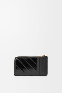 Coin cardholder in eel, stitched in panels arranged in a diagonal pattern, with a knot zip pull. - Four card slots, zipped compartment - Zip closure - Calfskin lining - Gold embossed LOEWE Colour: Black Metallic colour: Gold Main material: Eel Weight: 0.039 kg Height: 7.5 cm Width: 13 cm Depth: 1 cm Made in: Spain