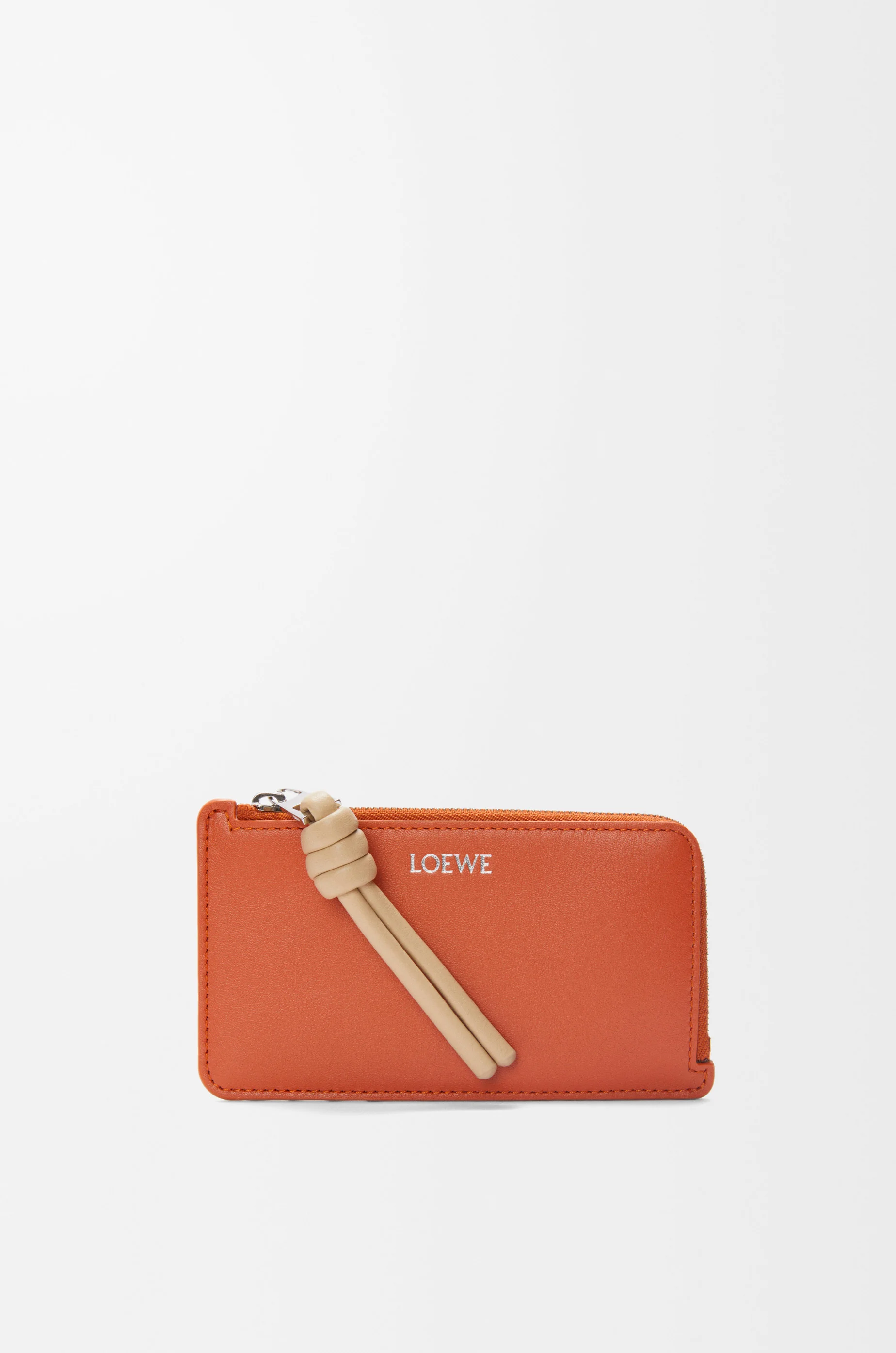 Coin cardholder in shiny nappa calfskin. - Four card slots, one zipped compartment - Zip closure with contrast knot pull - Contrast calfskin lining - Gold embossed LOEWE Details - Colour : Maple/Papercraft - Metallic colour : Palladium - Main material : Shiny Nappa Calf - Weight : 0.03 kg - Height (cm) : 7.5 - Width (cm) : 13 - Depth (cm) : 1 - Height (inch) : 3 - Width (inch) : 5.1 - Depth (inch) : 0.4 - Model ID : CEM1Z40X02 - CIL : - 0011092814 - Made in : Spain