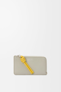 Coin cardholder in shiny nappa calfskin. - Four card slots, zipped compartment - Contrast knot zip pull - Contrast calfskin lining - Gold embossed LOEWE Colour: Shell Grey/Dandelion Metallic colour: Palladium Main material: Shiny Nappa Calf Weight: 0.03 kg Height: 7.5 cm Width: 13 cm Depth: 1 cm Made in: Spain