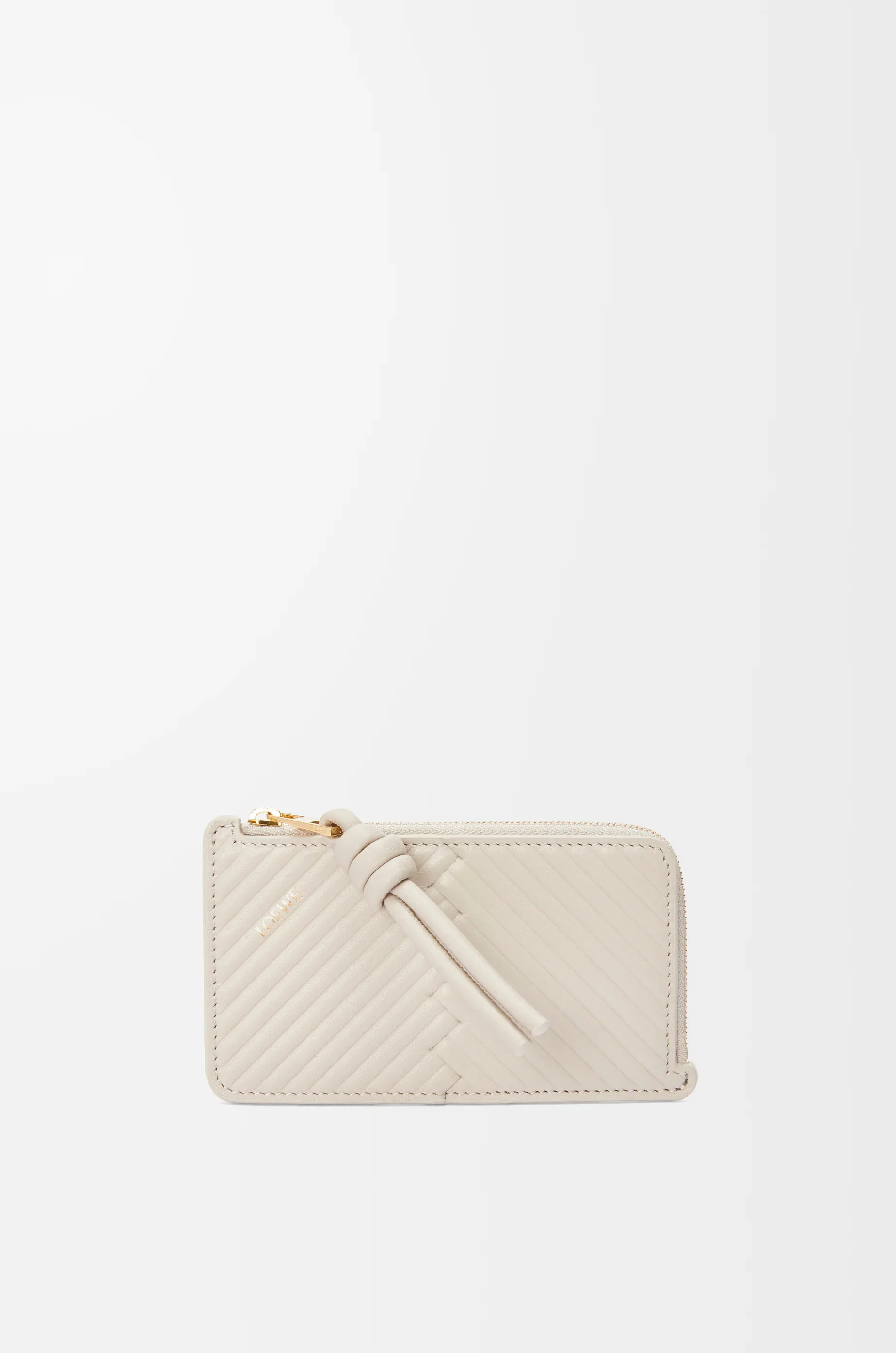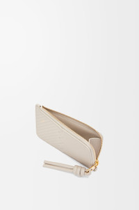Coin cardholder in shiny nappa calfskin that is uniquely moulded, debossed and stitched to create a diamond pattern. - Four card slots, one zipped compartment - Zip closure with calfskin knot pull - Calfskin lining - Gold embossed LOEWE Details - Colour : Light Oat - Metallic colour : Gold - Main material : Shiny Nappa Calf - Weight : 0.05 kg - Height (cm) : 7.5 - Width (cm) : 13 - Depth (cm) : 1 - Height (inch) : 3 - Width (inch) : 5.1 - Depth (inch) : 0.4 - Model ID : CEM1Z40X04 - CIL : - 0011182250 - Made in : Spain