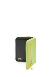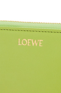 Compact zip around wallet in shiny nappa calfskin with a contrasting knot zip pull. - Six card slots - Four slip pockets - One large pocket for bills and notes - Zipped coin compartment on the back - Contrast calfskin lining - Gold embossed LOEWE Details - Colour : Anise/Black - Metallic colour : Gold - Main material : Shiny Nappa Calf - Weight : 0.097 kg - Height (cm) : 9.5 - Width (cm) : 12.2 - Depth (cm) : 1.4 - Height (inch) : 3.7 - Width (inch) : 4.8 - Depth (inch) : 0.6 - Model ID : CEM1CWZX01 - CIL : - 0011035383 - Made in : Spain