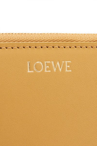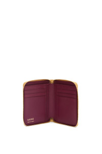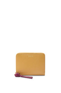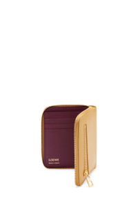 Compact zip around wallet in shiny nappa calfskin with a contrasting knot zip pull. - Six card slots - Four slip pockets - One large pocket for bills and notes - Zipped coin compartment on the back - Contrast calfskin lining - Gold embossed LOEWE Details - Colour : Sahara/Crimson - Metallic colour : Gold - Main material : Shiny Nappa Calf - Weight : 0.097 kg - Height (cm) : 9.5 - Width (cm) : 12.2 - Depth (cm) : 1.4 - Height (inch) : 3.7 - Width (inch) : 4.8 - Depth (inch) : 0.6 - Model ID : CEM1CWZX01 - CIL : - 0011092293 - Made in : Spain