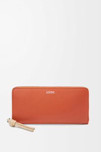 Zip around wallet in shiny nappa calfskin with a contrast knot zip pull. - Four card slots, one slip pocket, two large note pockets - One zipped compartment at the back - Zip closure - Contrast calfskin lining - Gold embossed LOEWE Details - Colour : Maple/Papercraft - Metallic colour : Palladium - Main material : Shiny Nappa Calf - Weight : 0.19 kg - Height (cm) : 10 - Width (cm) : 19 - Depth (cm) : 2 - Height (inch) : 3.9 - Width (inch) : 7.5 - Depth (inch) : 0.8 - Model ID : CEM1G39X02 - CIL : - 0011104585 - Made in : Spain