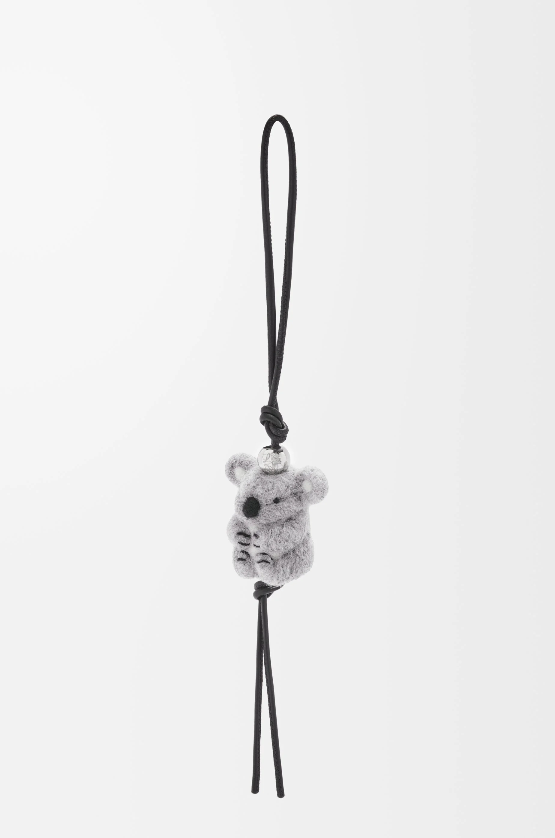 Koala charm in felt with a looped tubular calfskin strap and an Anagram Pebble. - Engraved Anagram Details - Colour : Light Grey/Black - Metallic colour : Palladium - Main material : Felt - Weight : 0.04 kg - Width (cm) : 40 - Depth (cm) : 4 - Width (inch) : 15.7 - Depth (inch) : 1.6 - Model ID : CA36232X33 - CIL : - 0011195443 - Made in : Spain