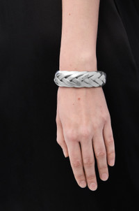 Large braided cuff in sterling silver inspired by woven leather. - Engraved with LOEWE Details - Colour : Silver - Metallic colour : Silver - Main material : Sterling Silver - Weight : 0.096 kg - Model ID : JX99240X01 - Made in : Italy