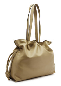 Launched in the 1970s, the Flamenco cinches closed using drawstring pulls finished in its signature coiled knots. Now introduced as a large shoulder bag in nappa calfskin. - The Flamenco large can hold for example a large wallet, all mobile phones, a laptop, 1L. bottle and sunglasses case. - Shoulder carry - Discreet magnetic closure - One interior zipped pocket - Herringbone cotton canvas lining - Embossed Anagram Details - Colour: Clay Green - Metallic colour: Gold - Main material: Nappa Calf - Handle drop: 29 cm - Weight: 0.61 kg - Height (cm): 29 - Width (cm): 38 - Depth (cm): 14 - Height (inch): 11.4 - Width (inch): 15 - Depth (inch): 5.5 - Model ID: A411FL1X01 - CIL: 0010825883 - Made in: Spain