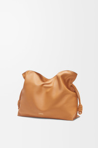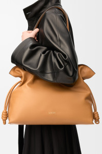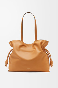 Launched in the 1980s, the Flamenco cinches closed using drawstring pulls finished in its signature coiled knots. This large version is crafted in nappa calfskin. - Shoulder carry - Calfskin top handles - Discreet magnetic closure - One interior zipped pocket - Herringbone cotton canvas lining - Gold or silver LOEWE embossed Details - Colour: Warm Desert - Metallic colour: Gold - Main material: Nappa Calf - Handle drop: 29 cm - Weight: 0.64 kg - Height (cm): 29 - Width (cm): 38 - Depth (cm): 14 - Height (inch): 11.4 - Width (inch): 15 - Depth (inch): 5.5 - Model ID: A411FL1X18 - CIL: 0011034576 - Made in: Spain